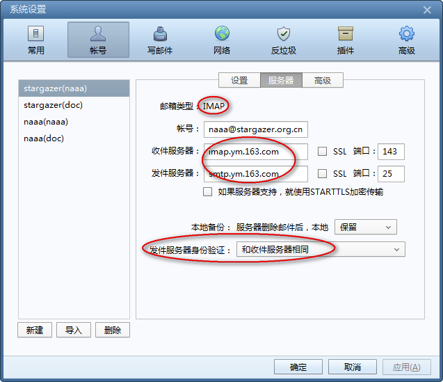 然后就是要改变域名解析,将邮箱的解析指向163企业邮箱,等生效之后,再重新建一个邮箱,注意163免费邮箱不能被foxmail识别出来,需要手动改为IMAP,服务器改为带ym的服务器。