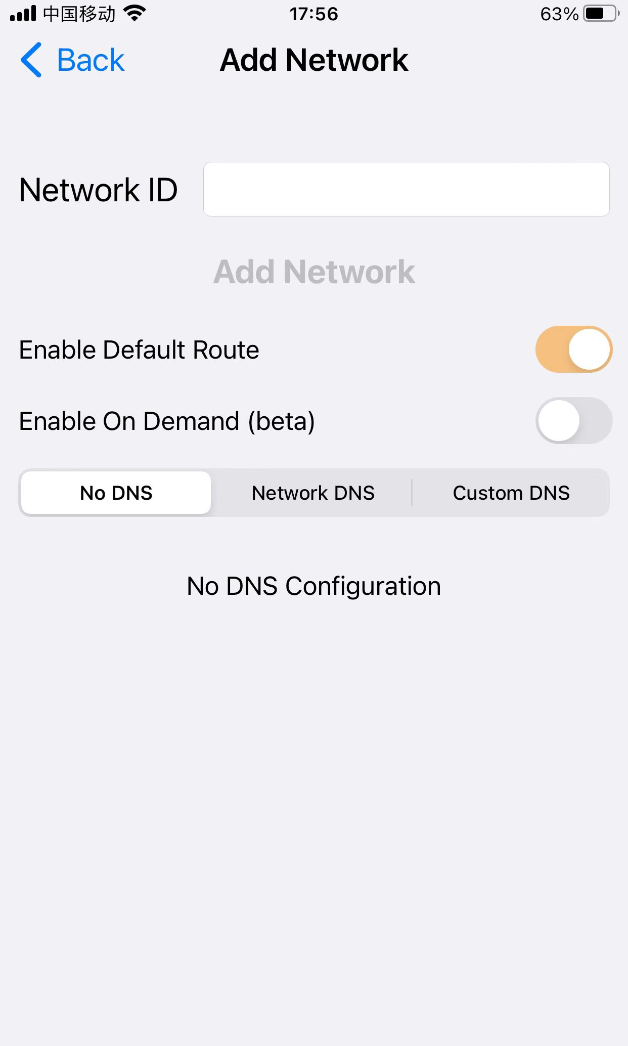 手机端下载zerotier应用,注意ios需要采用国外的id。新建个Network,输入ZerotierID,注意要打开Enable Default Route,会提示安装V*P*N,选择Yes.