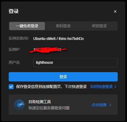 点击这个服务器,选择一键登录