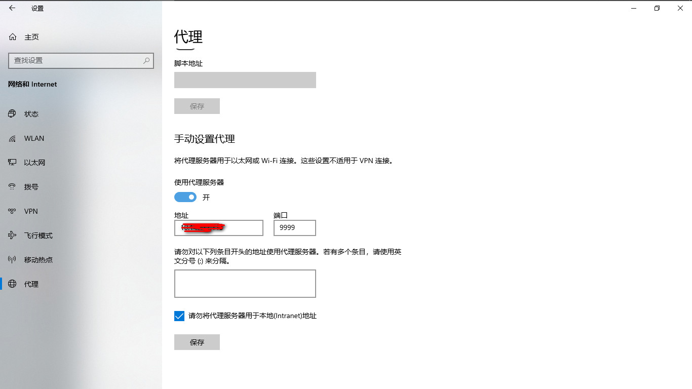 在网络和Internet设置->代理设置代理服务器,IP地址服务器Zerotier ip地址,端口号是squid配置文件的端口号。