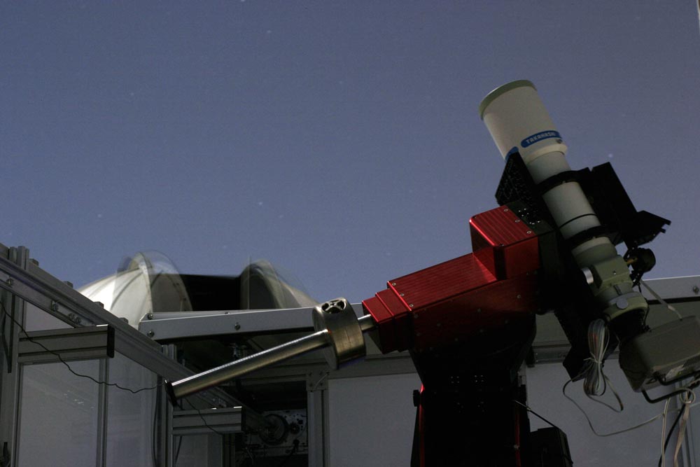 Star-tracker是由救护车改造的移动天文台,里面安装了C11施卡望远镜,采用6英尺的玻璃纤维圆顶。施卡望远镜上驮着Coronado太阳滤镜,通过连接的摄像头来观测太阳。在显示器上可以看到巨大的太阳黑子,耀斑和日饵,过几分钟就会改变形状。