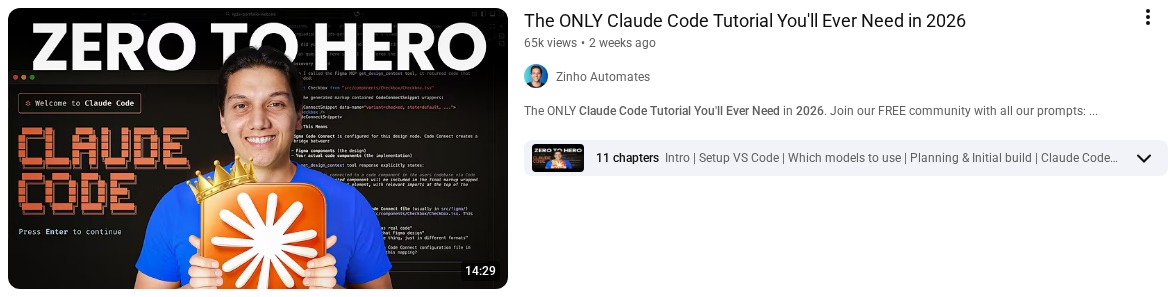 自称"你唯一需要的 2026 Claude Code 教程",涵盖最新功能、快捷技巧和实战建议的全面指南。