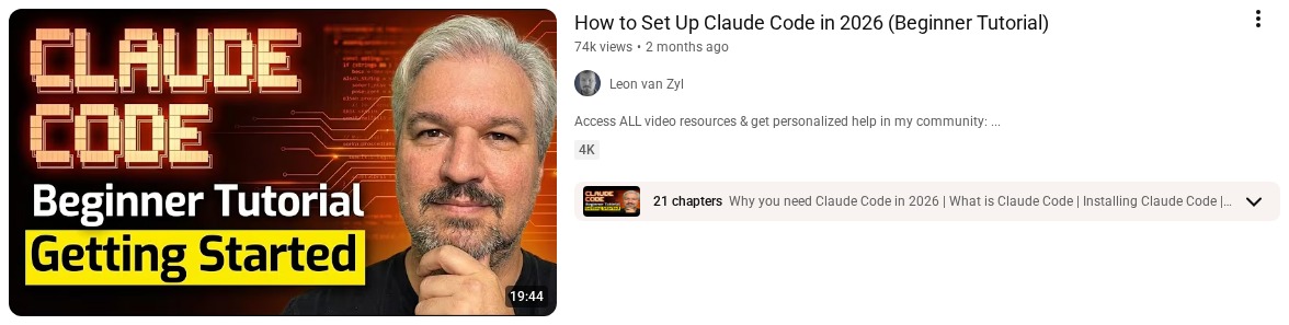 Leon van Zyl 的 2026 最新安装指南,涵盖 Claude Code 安装、环境配置和初始设置全流程。