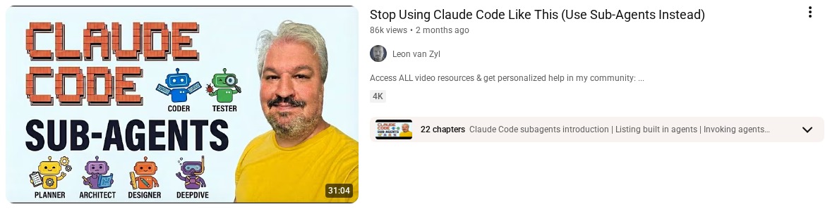 Leon van Zyl 分享 Claude Code 的常见低效用法,以及如何正确使用 Sub-Agent 功能提升开发效率。